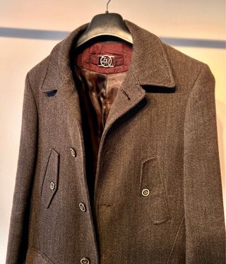 Abrigo largo de la marca Macson, ideal para hombre. Presenta un diseño clásico y elegante. - Lana 70% - Poliamida 20% - Chasemiere 10% - Cierre abotonado. - Bolsillos frontales. - Cuello camisero.