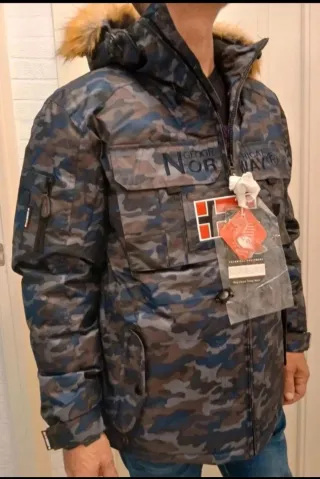 Chaqueta de camuflaje Geographical Norway para hombre. - Diseño moderno y funcional. - Capucha con pelo. - Múltiples bolsillos.