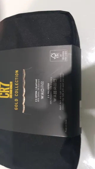 Pack de 5 calzoncillos de la colección Gold de CR7. - Diseño en color negro con detalles dorados. - Incluye imagen de Cristiano Ronaldo en el empaque.