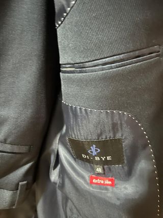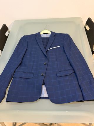Traje elegante de color azul marino. Usado hace tiempo y conservado en armario durante años. Lo vendo porque ya no me cabe. Precio negociable.