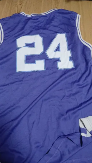 Camiseta de baloncesto con el nombre Los Angeles y el número 24. - Diseño deportivo. - Ribetes blancos en cuello y sisas.