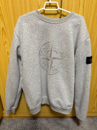 Sudadera gris de Stone Island. - Logo estampado en el frontal. - Parche distintivo en la manga izquierda.