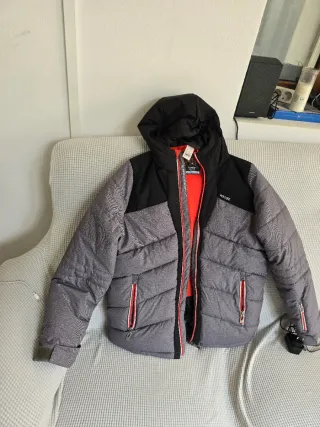 Chaqueta de invierno de la marca Wedze, ideal para temperaturas frías. - Diseño acolchado con acabado texturizado. - Cremallera frontal con detalles en rojo y blanco. - Capucha integrada. - Bolsillos laterales con cremallera. Tiene un pequeño rasguño al lado del bolsillo,se vende tal cual,es una buena chaqueta de invierno,gruesa y abriga muchisimo,solo se la puse 2 veces,aparte del pequeño rasguño esta impecable.
