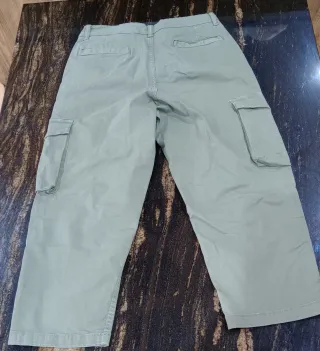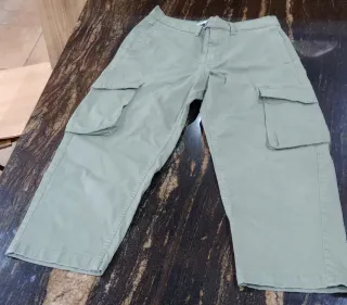 Pantalón de estilo largo en color verde claro, talla 40. - Diseño con múltiples bolsillos. - Tejido resistente y cómodo. - Marca Zara
