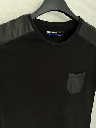 Camiseta color negro talla S de hombre, con bolsillo delantero, en perfecto estado, marca Devred. 📏 Medidas: Largo 64 cm Ancho 41,5 cm 🔍 Composición: 90% algodón 10% poliamida