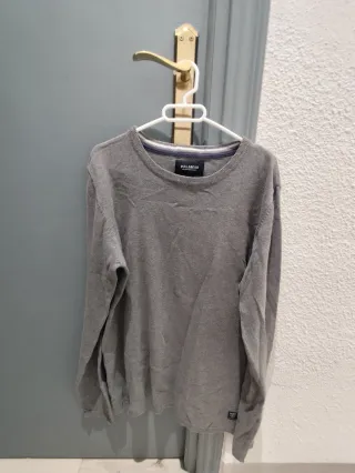 Jersey de punto fino para hombre. - Cuello redondo. - Manga larga. - Detalle de etiqueta en la parte inferior.