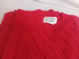 Jersey deportivo de color rojo con un diseño de rombos. - Tejido de punto. - Cuello redondo. - Manga larga.