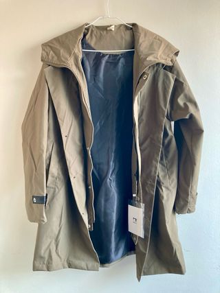 Chaqueta de hombre en color verde kaki. - Ligera. - Cierre de cremallera y/o botones, según como se quiera llevar. - Bolsillos laterales. - Capucha. No la he estrenado, esta nueva con la etiqueta.