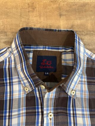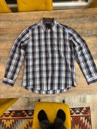 Camisa de manga larga con estampado a cuadros. - Cuello abotonado. - Detalle de logo bordado en el pecho.