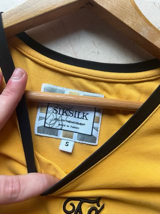 Camiseta de manga corta con rayas y forro por dentro, que se aprecia en las fotos. Color: tonos grises oscuros y negros La composición está en la última foto. Marca: Decathlon Talla: 2XL. Medida de sisa a sisa: 59cm Estado: Sin estrenar. Precio: 11€
