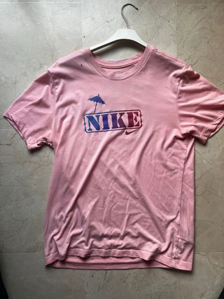 Camiseta de manga corta con un llamativo diseño tie-dye en tonos rojos, azules y blancos. - Estampado tie-dye. - Logo de Nike en el pecho. - Silueta de levantador de pesas.