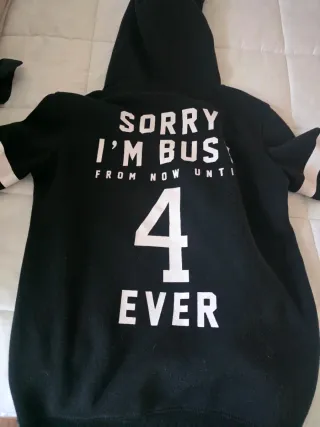 Sudadera negra con detalles de rayas blancas en las mangas. Perfecta para un estilo casual. - Diseño con capucha. - Cordones blancos para ajustar la capucha. - Rayas blancas en ambas mangas.
