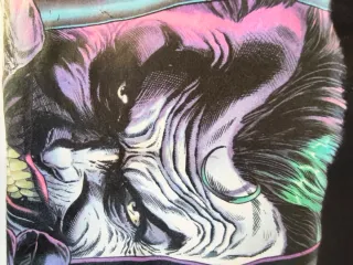Sudadera con diseño inspirado en Jocker. - Color principal negro. - Detalles en morado y toques verdes.