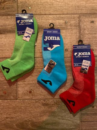 Pack de tres pares de calcetines Joma de la línea Sport Series. Vienen en colores azul, verde y rojo. - Talla 39-42. - Fabricados con algodón peinado para mayor confort. - 3 pares.