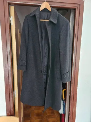 Abrigo largo de alta calidad de paño para hombre. Talla 48. De hombros tiene una longitud de 46cm y de manga tiene 60cm Se entrega en mano. - Diseño clásico. - Cierre de botones. - Bolsillos laterales. - Puños abotonados.