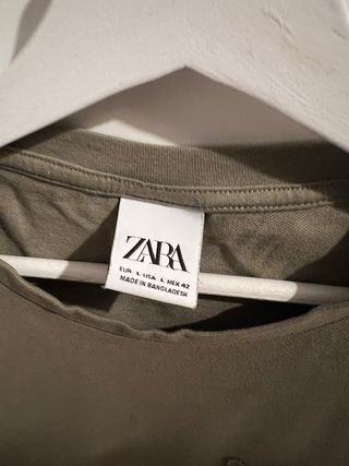 Camiseta de manga corta de Zara para hombre. - Color verde oliva. - Con bolsillo en el pecho.