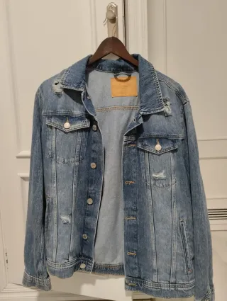 Chaqueta vaquera de la marca Jack & Jones. Un clásico para cualquier armario. Sin utilizar. - Diseño desgastado con rotos. - Cierre de botones metálicos. - Dos bolsillos en el pecho. Talla M