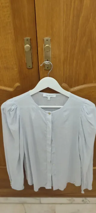 Lote de tres camisas de diferentes marcas. La rosa me la he puesto 1 vez!! - Camisa Pedro del Hierro con cuello redondo y manga abullonada. - Camisa Easy Wear de color azul. - Camisa Mango con botones frontales.