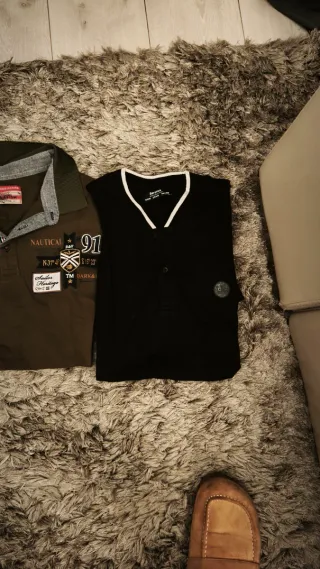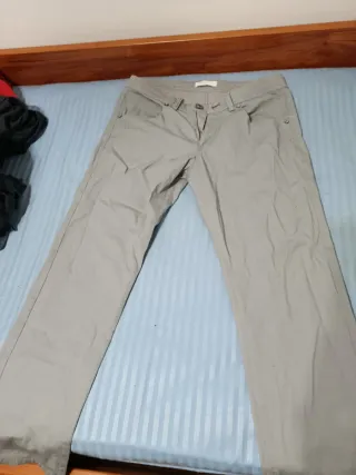 Lote de 5 pantalones pitillo talla 40-42 1 pantalón chándal M Polos M-L Camisa vaquera L Americana M Cazadora S pero da talla para una M Cazadora semipiel M