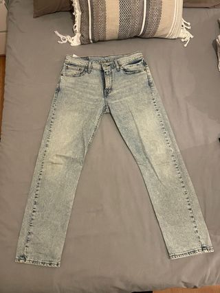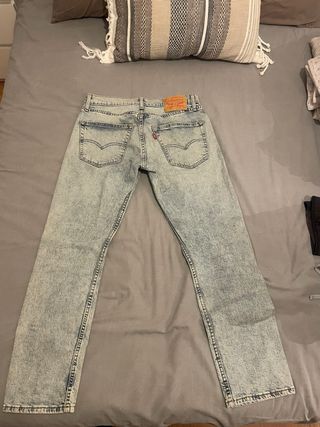 Vaqueros Levi's 502 con un lavado desgastado y moderno. Apenas usado. - Talla W30 L30. - Lavado azul claro con efecto jaspeado. - Cierre de cremallera.