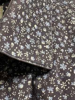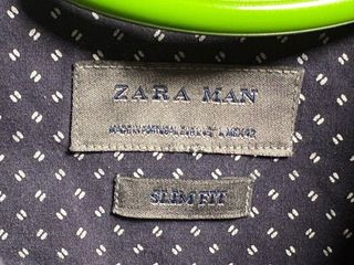 Camisa de Zara con un bonito estampado floral. - Diseño con flores en tonos azules y blancos. - Manga larga. - Algodón 100%. - Corte ajustado Slim Fit. En la doblez del cuello, la última foto sobre todo, se nota roce y desgaste. Doblado el cuello y puesta no se nota. REGALO OTRA CAMISA LISA COLOR BOURDEOS TALLA L