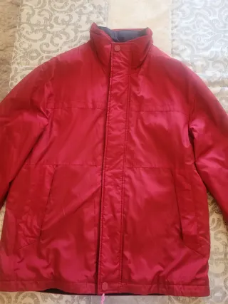 Chaquetón para hombre de color rojo. Diseño moderno y funcional. - Cuello alto. - Cierre de cremallera y botones. - Bolsillos laterales.