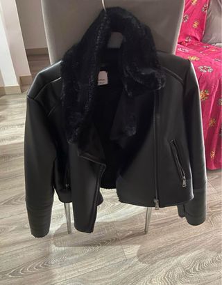 Chaqueta con cuello de borreguito. - Cierre de cremallera. - Bolsillos con cremallera en el pecho y laterales. - Puños con cremallera.