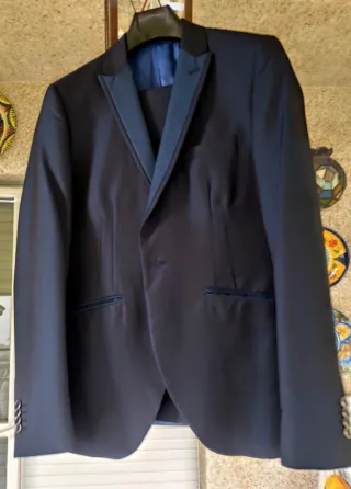 Elegante traje de chaqueta para hombre. - Chaqueta de corte moderno. -Talla (46 pantalón) (52 chaqueta) - Pantalón a juego. - Cierre de botones en la chaqueta. - Puños con botones.