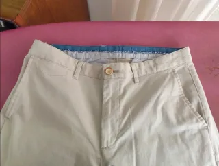 Bermuda juvenil de color beige. - Talla 42 - Cintura con trabillas para cinturón. - Cierre de botón y cremallera. - Bolsillos laterales. - Bolsillos traseros.