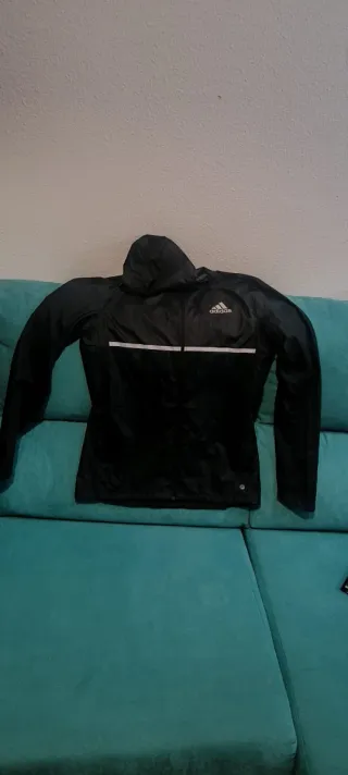 Chaqueta Adidas original sin estrenar aún con la etiqueta en color negro, muy ligera y cómoda. Ideal para running, deporte, caminar o uso diario. ✔️ Tejido fino tipo cortavientos ✔️ Capucha integrada ✔️ Detalles reflectantes delante y detrás (perfecta para correr de noche) ✔️ Cremallera frontal ✔️ Ajuste cómodo ✔️ En muy buen estado, apenas uso ✔️ Marca Adidas visible en el pecho