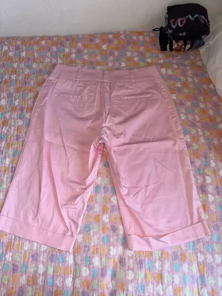 Pantalón corto de vestir en color rosa. Corte clásico y elegante. - Cintura con trabillas. - Bolsillos laterales y traseros. - Dobladillo en el bajo. - Cremallera y cierre invisible. Esa no es la marca del pantalón, es: PRECCHIO COLORS CONCEPT (no me dejaba ponerla)
