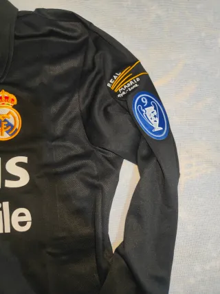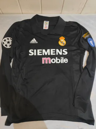 Camiseta de fútbol del Real Madrid, edición especial Centenario. - Diseño de manga larga. - Escudo del club y logo de Adidas. - Parches de la Champions League. - Patrocinio de Siemens Mobile. Dorsal de zinedine zidane