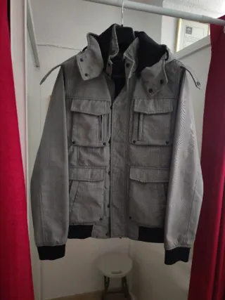 Abrigo largo para hombre, ideal para el frío. - Diseño moderno y funcional. - Cierre de cremallera y botones. - Capucha con pelo. - Bolsillos frontales.