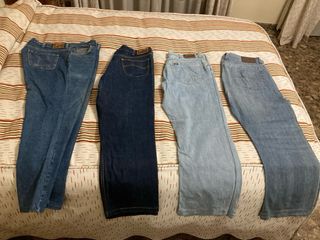 Varios pantalones vaqueros de la marca Lee en color azul. Son cómodos y versátiles. - Varios tonos de azul disponibles. - Diseño clásico de cinco bolsillos. - Cierre de cremallera y botón.