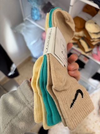Pack de tres pares de calcetines tobilleros Nike. - Modelo Dri-Fit Cotton Cushioned. - Talla EUR 41-45 / UK 8-11. - Diseño en color amarillo con logo. - Calcetines cómodos para el día a día.
