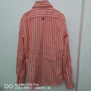 Camisa de manga larga con un diseño de rayas verticales en verde y blanco. Tommy Hilfiger original. Buen estado. - Cuello camisero. - Cierre de botones. - Pequeño logo de la marca bordado en el pecho.