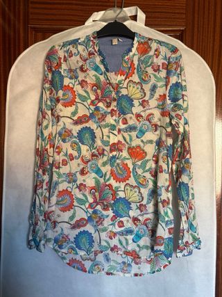 Camisa de manga larga con un vibrante estampado floral y de inspiración paisley. -Cuello mao con detalle. - Cierre de botones.
