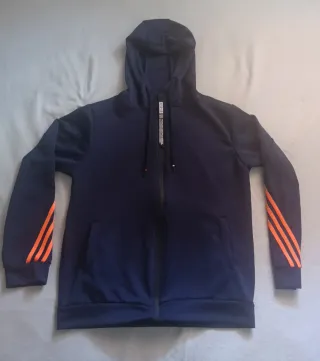 Chaqueta deportiva con detalles en naranja. - Es L aunque ponga XXL. - Diseño con capucha. - Cremallera frontal. - Bolsillos delanteros.