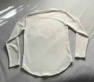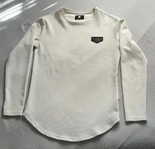 Camiseta de manga larga con un diseño moderno y textura única. Perfecta para un look casual. - Cuello redondo. - Detalle de parche con logo en el pecho. - Bajo curvo.