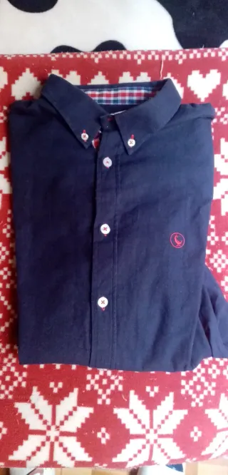 Camisa de manga larga de la marca BONES. - Color azul. - Talla L (equivalente a 42-44 / 52-54). - Cuello con botones. -detalles en rosa palo y azul
