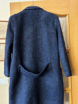Elegante abrigo de Pedro del Hierro en talla M. Su diseño moderno y el tejido le dan un toque especial. - Tejido con textura y acabado de pelo. - Cierre con dos corchetes y aguja de adorno -2 bolsillos delanteros - medida largo 100cm -medida de sisa 56cm