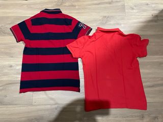 Lote de dos polos de manga corta sin estrenar - Polo a rayas azul marino y rojo. - Polo liso de color rojo. - Talla M.