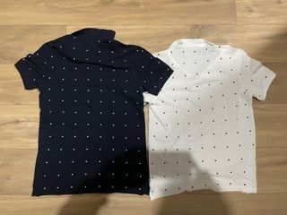 Lote de dos polos de la marca Zara. Usados solo una vez - Polo azul marino con estampado de puntos blancos. - Polo blanco con estampado de puntos en azul marino y blanco.