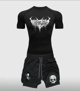 Conjunto deportivo para hombre de dos piezas. - Camiseta de manga corta. - Pantalón corto. - Diseño con estampado de calavera en el pantalón. -50% oferta