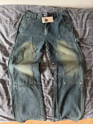 ⚡️ Pantalón vaquero de corte ancho y estilo baggy New Yorker. 🏷️Talla S 🎨Color: Marrón ✅Estado: Nuevo sin etiquetas 🔎Detalles: parche en la parte trasera, diseño marrón desgastado.