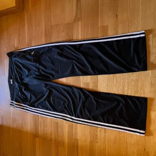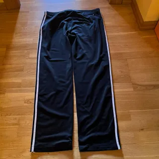Pantalón deportivo Adidas de corte ancho. - Diseño clásico con tres rayas blancas a los lados. - Cintura elástica para mayor comodidad.