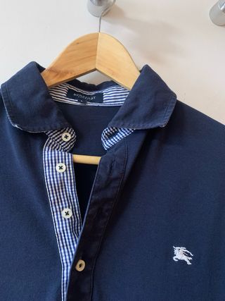 Polo azul marino de manga larga de Burberry. Talla 4 (equivale aprox. a una M). Con detalle de cuadros en el interior del cuello y puños y logo bordado en el pecho. 100% original. Muy poco uso, está impecable. Perfecto para un look casual arreglado.