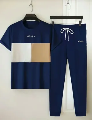Conjunto casual de dos piezas para estar en casa. - Camiseta de manga corta con diseño de bloques de color. - Pantalón largo con cordón. - Estampado Simple en ambas prendas.