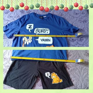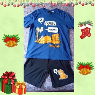 Conjunto de pijama de Garfield. Para un adolescente de 13-14 años que mida 158-162 - Camiseta azul con estampado de Garfield. - Pantalón corto negro con estampado de Garfield.