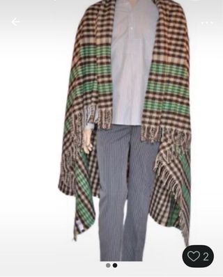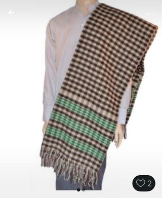 Manta de fallero, color beig,marrón y una franja roja oscuro como se ve la foto que tenía dos y ahora solo me queda la marrón y beis a cuadros con la franja roja la misma pero mas discreta Esta solo puesta una vez esta nueva.
